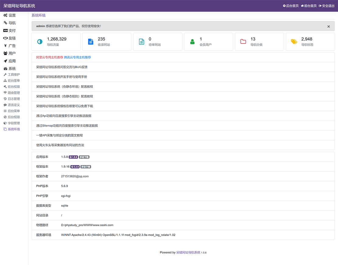 呆错网址导航系统是一款真正免费、开源的PHP分类导航程序,无任何加密代码、源代码完全公开、安全有保障、无后门隐患。
