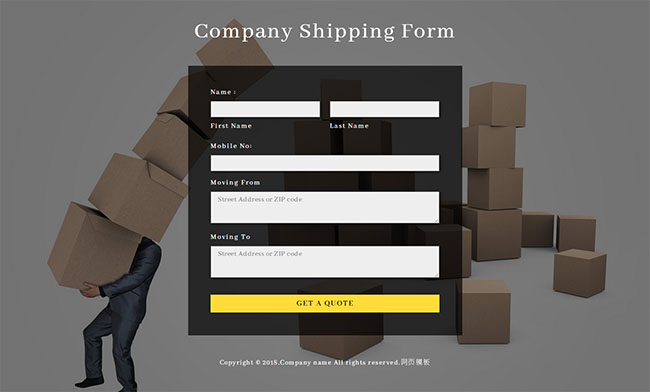 纸箱预订表单HTML模板是一款简洁的客户信息填写表单网站模板下载。提示:本模板调用到谷歌字体库,可能会出现页面打开比较缓慢。