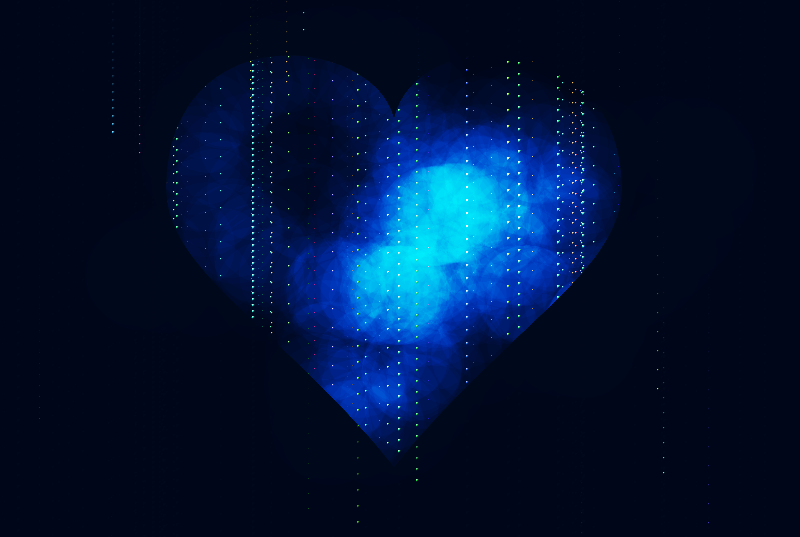 一款跟随鼠标移动特效,梦幻情人节爱心代码,画面中呈现了由动态线条组成爱心的动画效果,移动鼠标会有圆形图形在爱心上渲染,十分有趣。