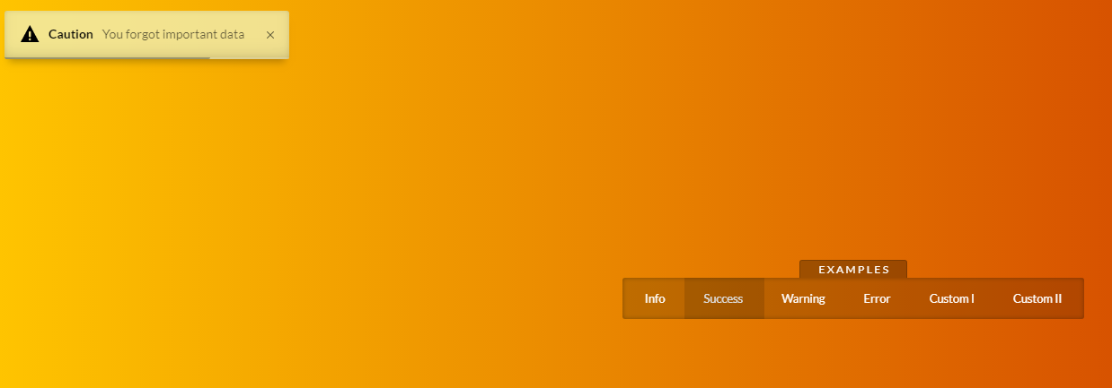 一款跨浏览器响应式消息通知插件。该消息通知插件体积小,使用简单。消息显示时带CSS3动画效果
