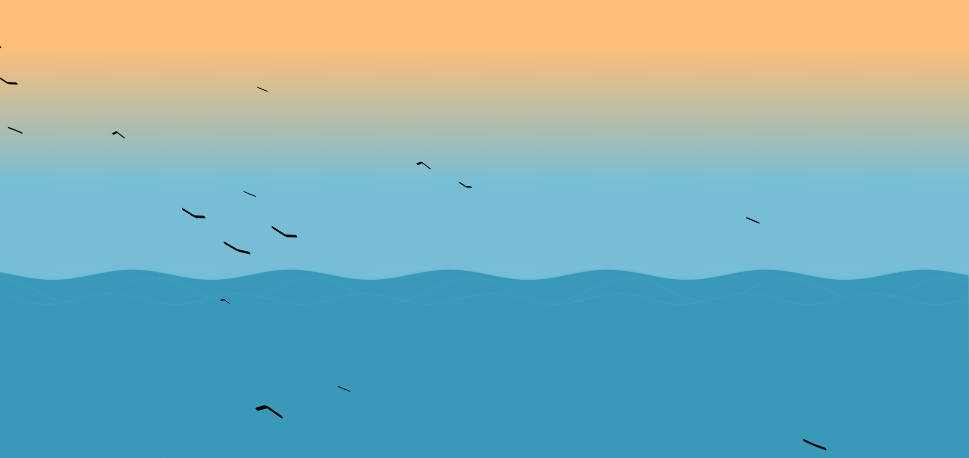 基于canvas绘制夕阳下的海面上一群鸟飞过动画。这是一款不错的海上动态场景特效。