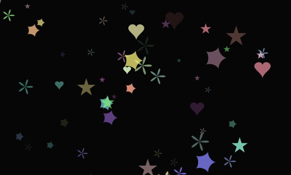 CSS3@keyframes属性制作五颜六色的花纹图案动画特效,星星、叶子、花朵、爱心混合动画效果。