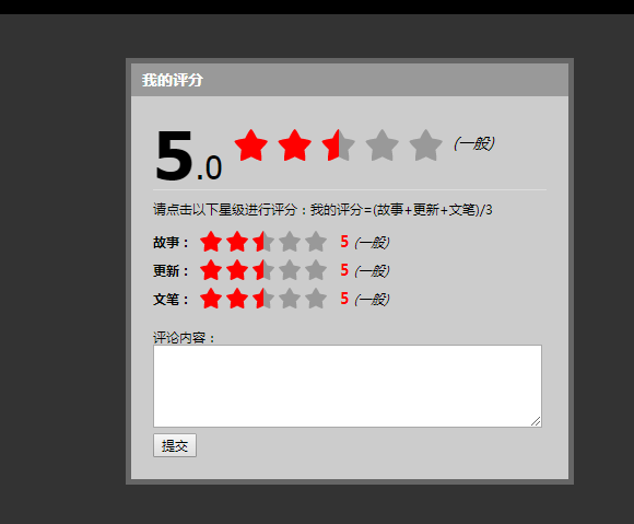 jquery打分评星级效果