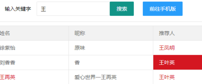 静态页面姓名搜索功能,对搜索到的姓名显示高亮,同时自动滚动到指定的位置,包含手机端和pc端两个页面。