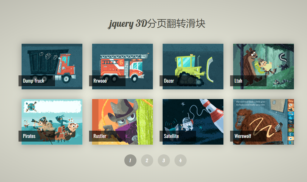 jquery实现的图片分页功能,图片网格排列3D翻转效果。