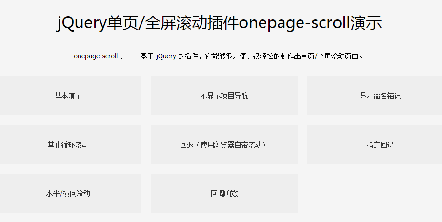 支持垂直滚动外还支持横向滚动的jQuery单页/全屏滚动插件onepage-scroll