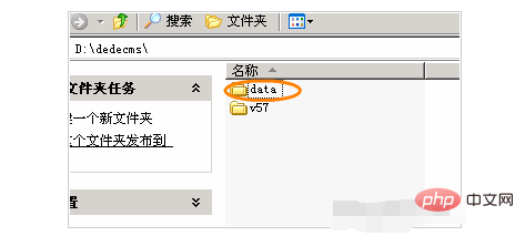 我们以“D:\\dedecms\\v57”作为我们系统的根目录。我们需要将目录下的数据文件夹(如图1)迁移到更高一级的目录(非Web目录),简单的直接剪切或复制即可。